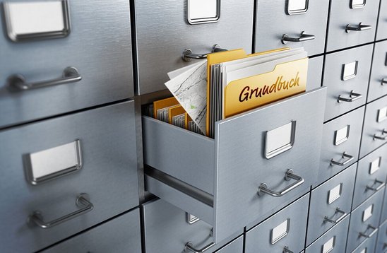 Das Grundbuch ist eines der wichtigsten Dokumente beim Grundstückskauf. Denn nur wer im Grundbuch eingetragen ist, ist auch offiziell der Besitzer der jeweiligen Fläche. Das Grundbuch befindet sich in der Regel bei den Grundbuchämtern der Amtsgerichte im jeweiligen Bezirk. Eine Ausnahme bildet zum Beispiel Baden-Württemberg. Hier führen staatliche Grundbuchämter der Gemeinde die Verzeichnisse. Zusammengefasst enthält das Grundbuch Informationen zu allen Grundstücksrechten, zu den Grundstücken selbst und den Eigentums- sowie Schuldverhältnissen. Für Bauherren regelt das Grundbuch vor allem Rechte und Pflichten.