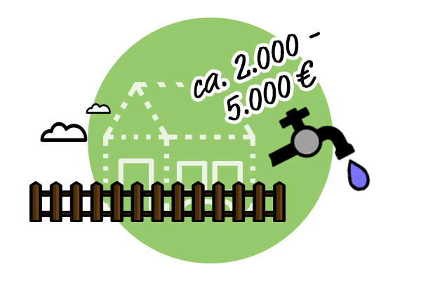 Gemäß entsprechender Erfahrungswerte müssen Sie hier finanzielle Aufwendungen von ca. 2.000 bis etwa 5.000 Euro einplanen. Liegt Ihr Grundstück in einer ländlichen Gegend, können Sie allerdings zumindest theoretisch auf einen Anschluss an das Abwassernetz verzichten. Stattdessen legen Sie sich einfach einen entsprechend großen Tank zu, in dem Sie das Abwasser speichern. Spezifische Dienstleister pumpen bei Bedarf bzw. regelmäßig das Abwasser ab. Aber ob sich diese alternative Methode wirklich lohnt, sollten Sie zuvor immer sorgfältig kalkulieren. Auf lange Sicht gesehen, bietet diese Variante aber auf jeden Fall Einsparungspotenzial.