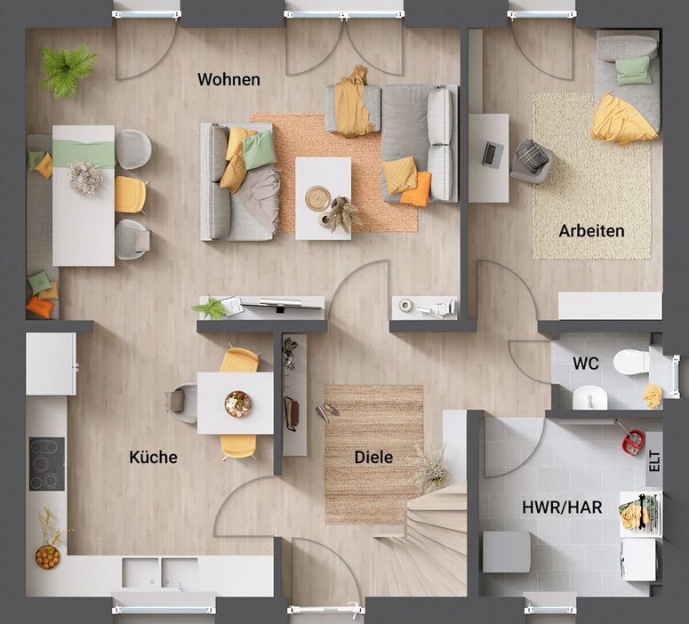 Abbildungen enthalten Sonderwünsche die nicht Vertragsbestandteil sind, regionale Preis- und Ausstattungsänderungen möglich. Schlüsselfertig im Sinne dieses Angebotes bedeutet: ohne Tapezier- und Teppichverlegearbeiten.