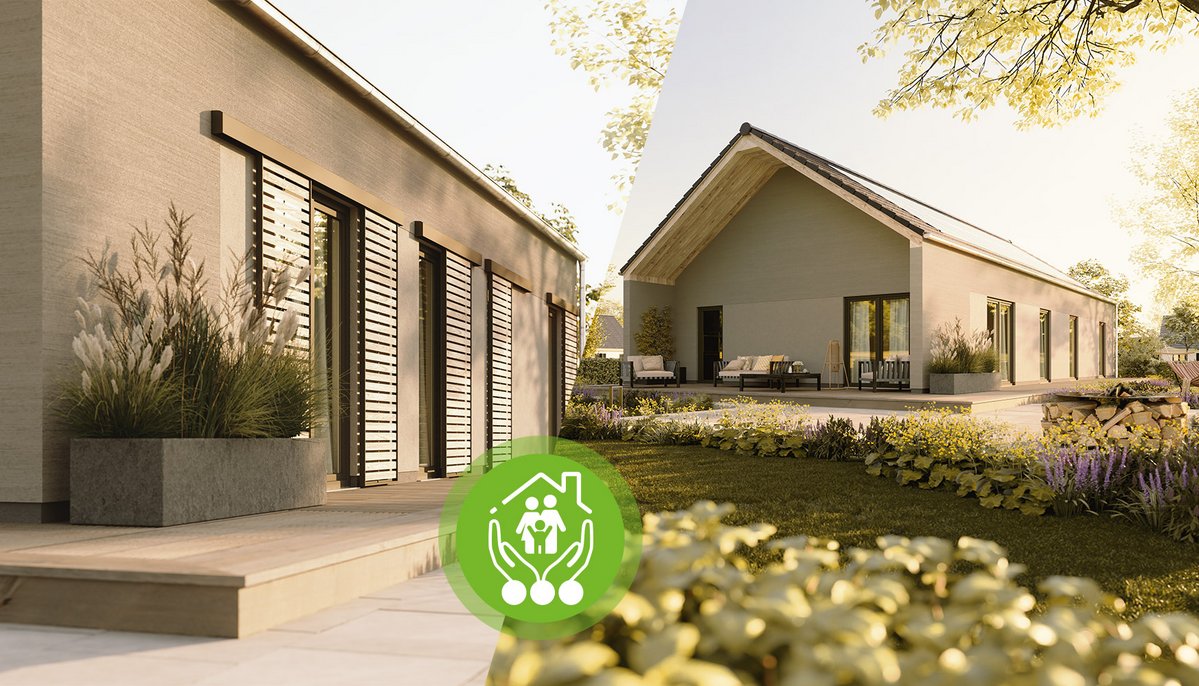 Highlights, wo das Auge hinsieht – das neue Design trägt den Namen Novo und hat den Bungalow 100 einmal neu interpretiert. Dabei dreht sich alles um die Außengestaltung des Hauses. Das Innere des Bungalows bleibt Ihnen mit all seinen Vorteilen erhalten. So stehen weiterhin verschiedene Grundriss-Varianten zur Auswahl, die Ihnen viel Flexibilität in den eigenen vier Wänden bieten.