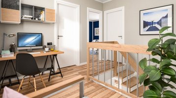 Beim Hausbau lohnt es sich, den Grundriss nicht nur für die aktuelle Lebenssituation zu planen. Familien wachsen, Kinder ziehen irgendwann aus und auch das Thema Barrierefreiheit kann im Laufe der Jahre relevant werden. Eine vorausschauende Planung schafft hier langfristige Flexibilität. So kann ein zusätzliches Zimmer im Erdgeschoss später als barrierearmes Schlafzimmer dienen oder ein Kindezimmer nach dem Auszug als Hobbyraum oder Gästezimmer genutzt werden.